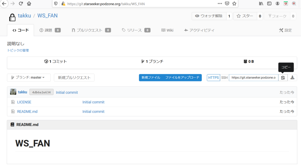 今回はSSHは特に使う気はないので、HTTPSのURIをコピー。