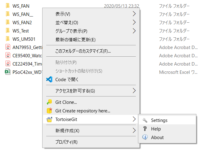 適当なフォルダを右クリック -> TortoiseGit -> Settings で設定画面を開く。