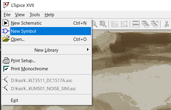 LTspiceにて、File -> New Symbolでシンボル作成画面を開く。