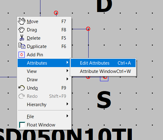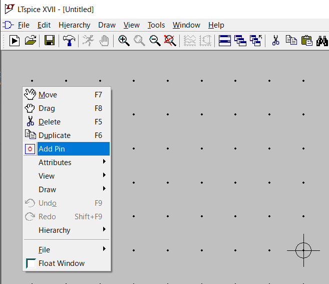 画面上で右クリック -> Add PinでSPICEモデルにあるピンを配置。