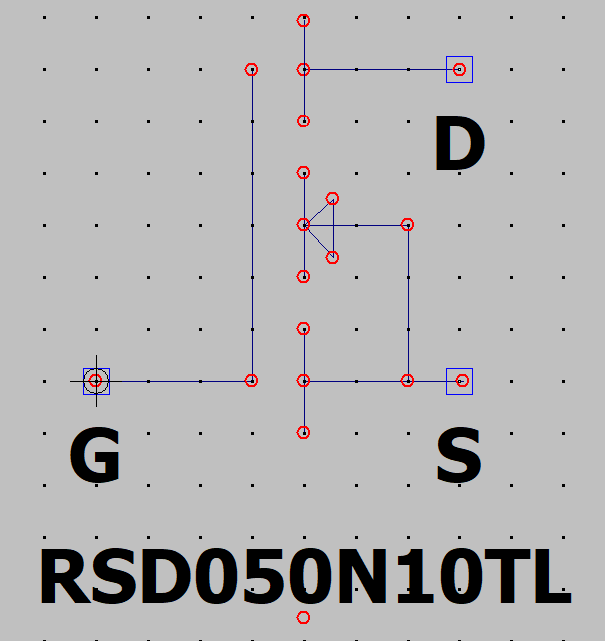 モデル名はRSD050N10。ピン名は1, 2, 3で、それぞれD(rain), G(ate), S(ource)となっている。