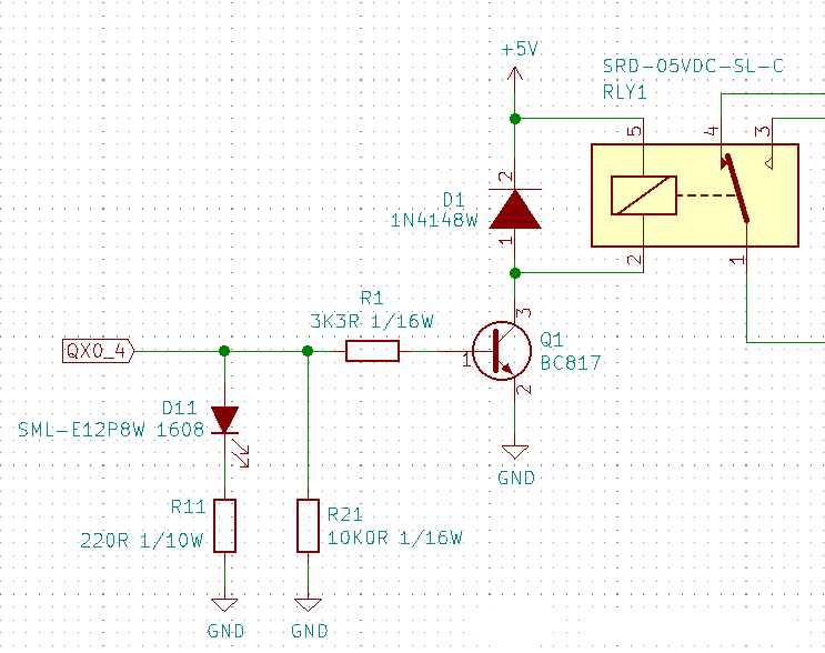 QX0.4~6には10kΩプルダウンを付けているが、内部プルアップのせいで0.5V程の電位が出てしまい、Transistorが微妙にONしてしまう。