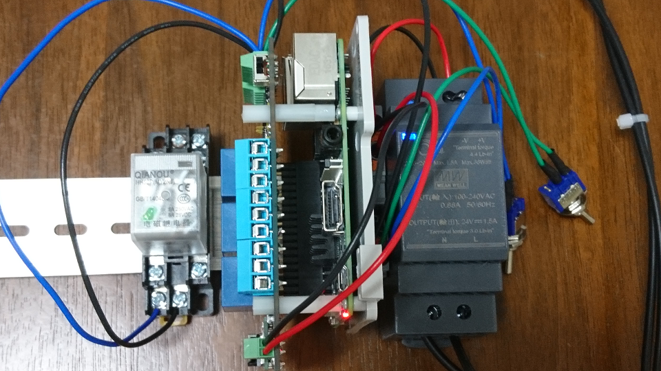 ラズパイDINレールに取り付けたRaspberry PI 3Bにスタックして、