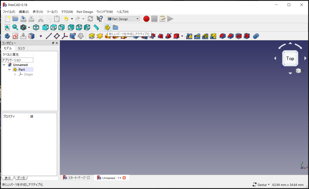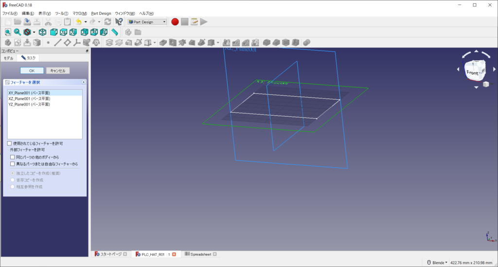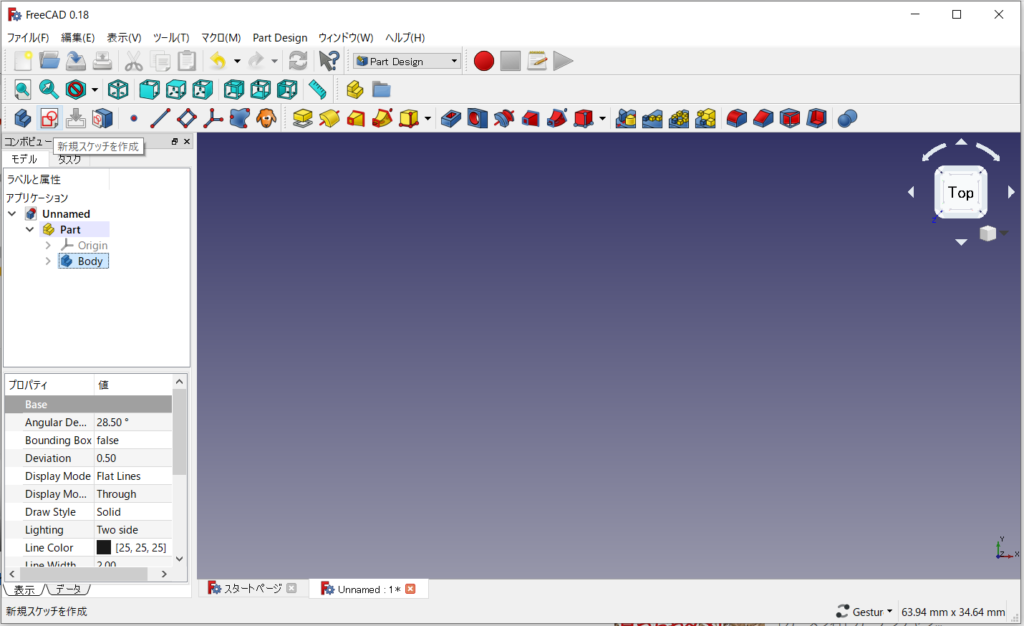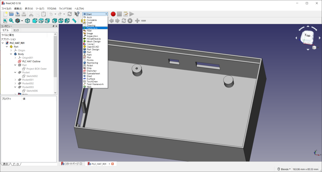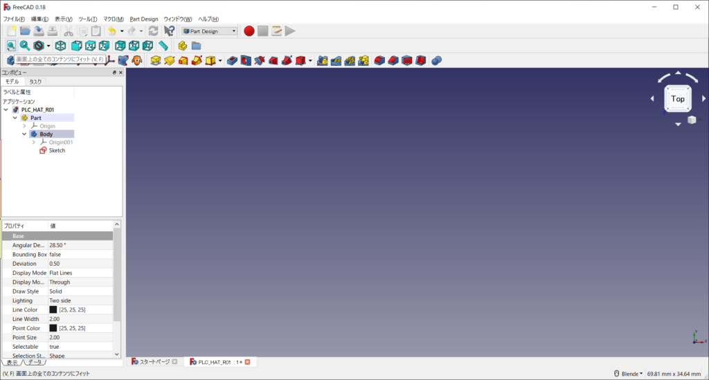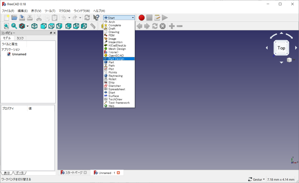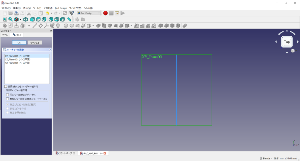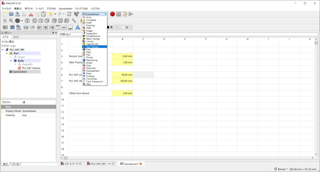 ここまでやったら、ワークベンチを”Part”に切り替えて、