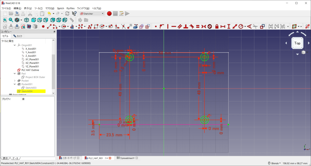 で、適当なサークルを、PLC HAT Outlineの適当な点と拘束すればよい。