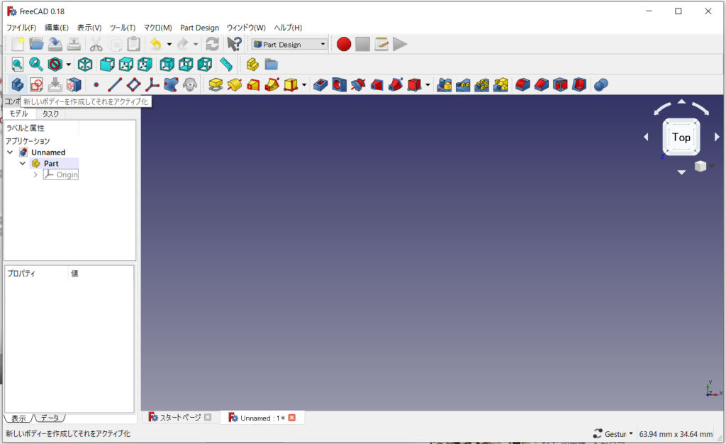 作成されたPartの下に、[新しいボディーを作成してアクティブ化]のボタンをクリックして、新規ボディーを追加