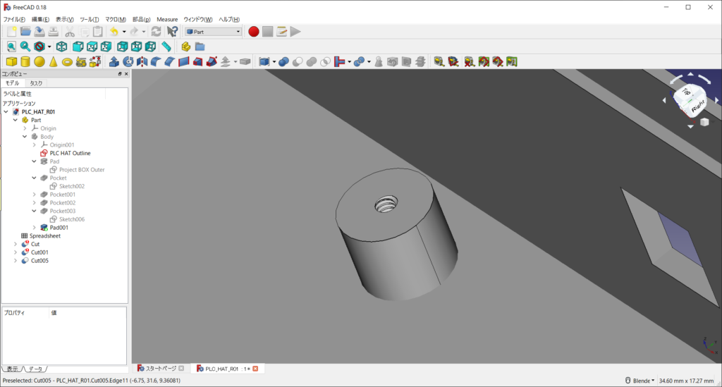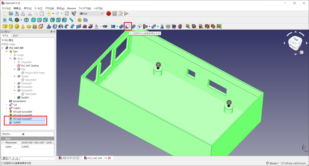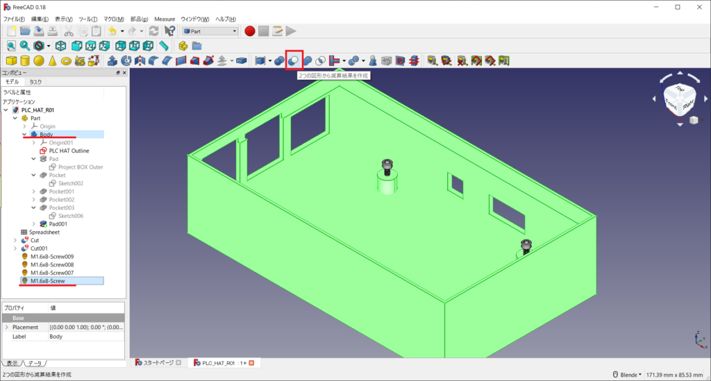 基本的に、3D CADは立体を削って作成するものらしい。(FreeCADだけ?)
